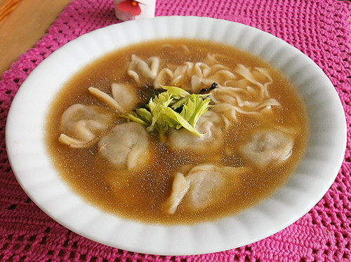 9:包入肉馅,用大骨汤煮好馄饨和面条即可开吃!