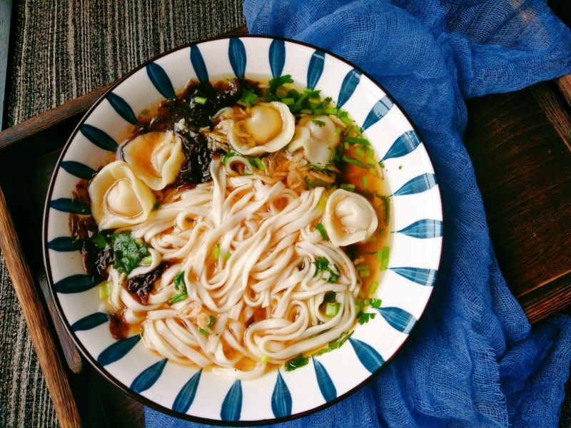 7:再把面条盛入碗里,一碗香喷喷的馄饨面就好了。