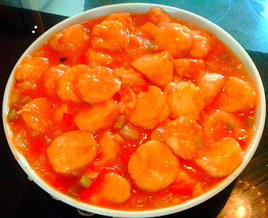 李锦记辣酱1勺子(饭勺);鸡精少许;生抽少许;糖少许;蚝油3分之1勺;蒜姜末少量;