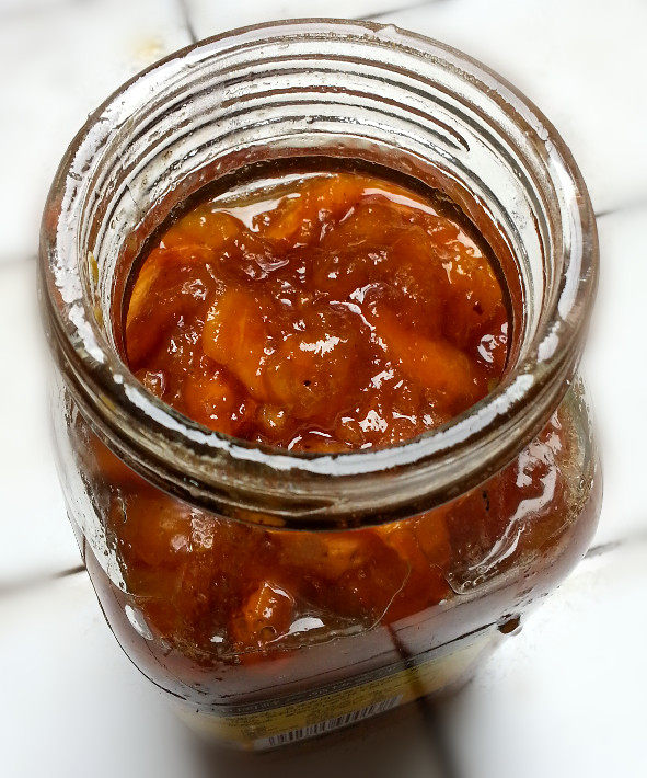 8:把锅里的枇杷水分熬干,颜色金莹剔透,即可关火。