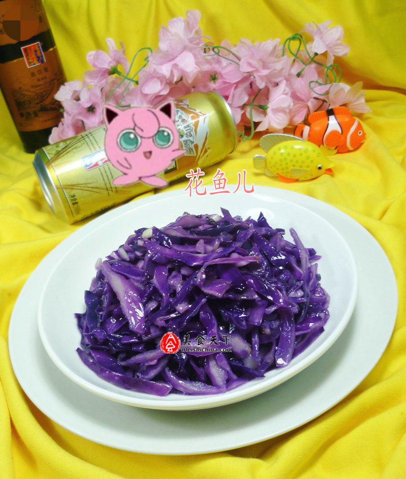 1:在超市或菜场买的紫甘蓝用温水洗净备用。