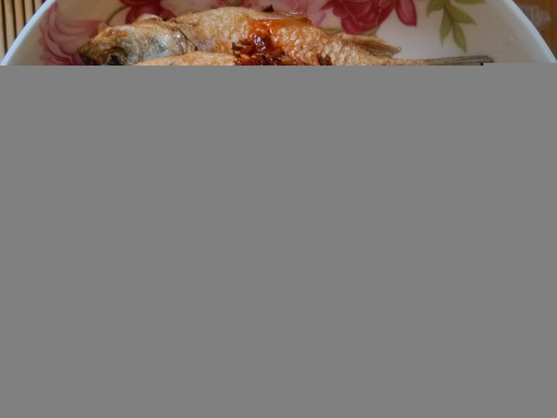7:浇上油,香喷喷的凉拌鲫鱼出锅了