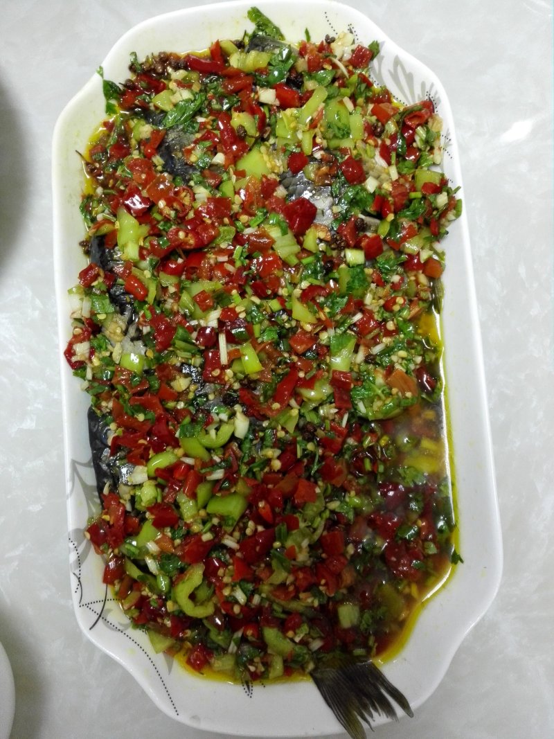 鲫鱼1000g;大蒜2头;青椒200g;红椒适量;