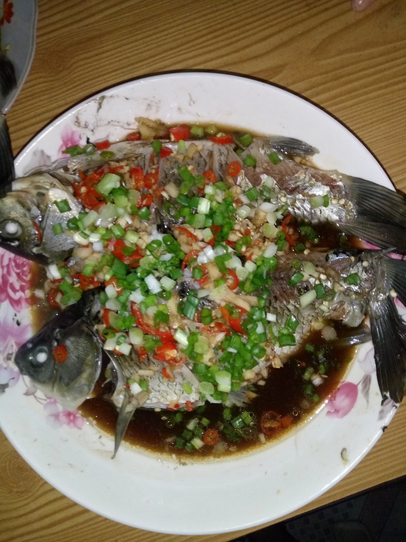 1:鱼让卖鱼滴大叔杀好,开肠破肚什么的都弄好。拿回来稍微再弄一下,去掉没弄干净的鱼鳞,洗干净即可。今天晚上赶时间,没在鱼肚子里抹盐,就吃原味的鱼好啦。鲫鱼的肉嫩,鲜。怎么吃都美味。
