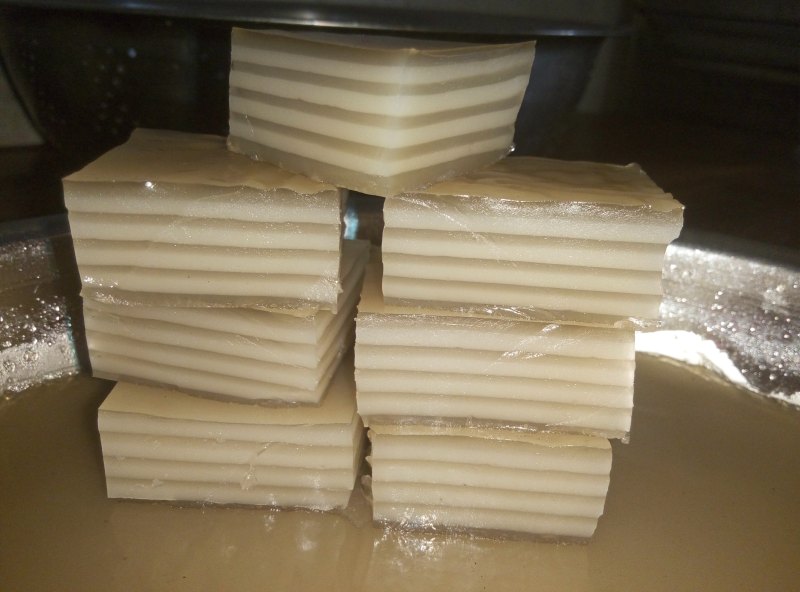 4:蒸完后取出放凉后便可切成自己喜欢的样子