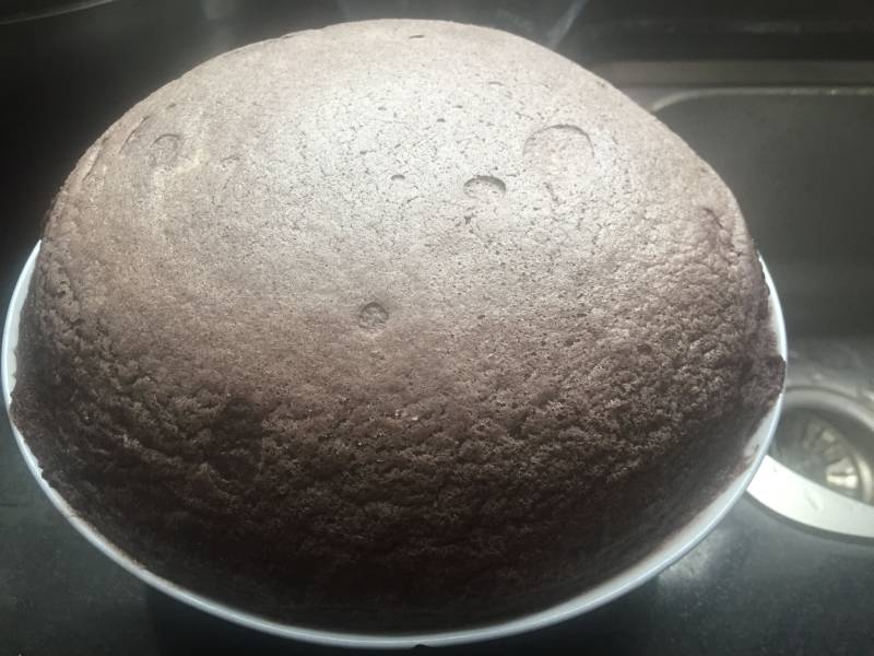 15:考好的蛋糕下面放油纸把蛋糕倒扣在上面