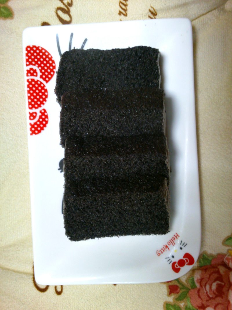 20:涂上打好的黑巧奶油,前面稍厚,后面留3、4CM左右不涂。