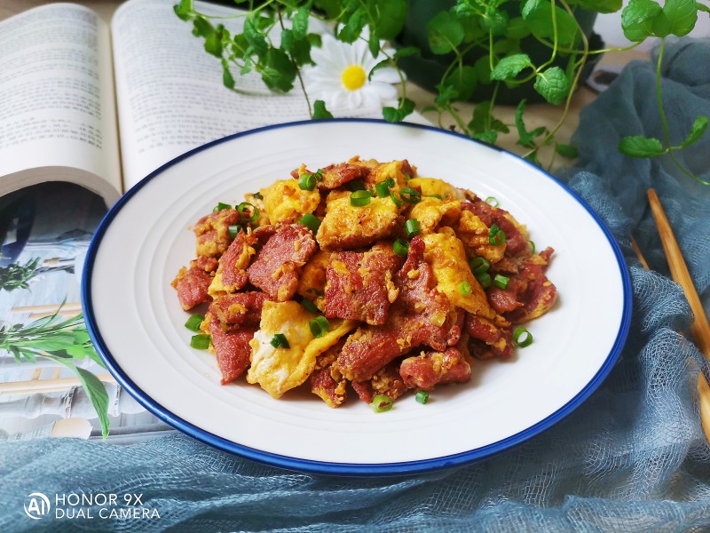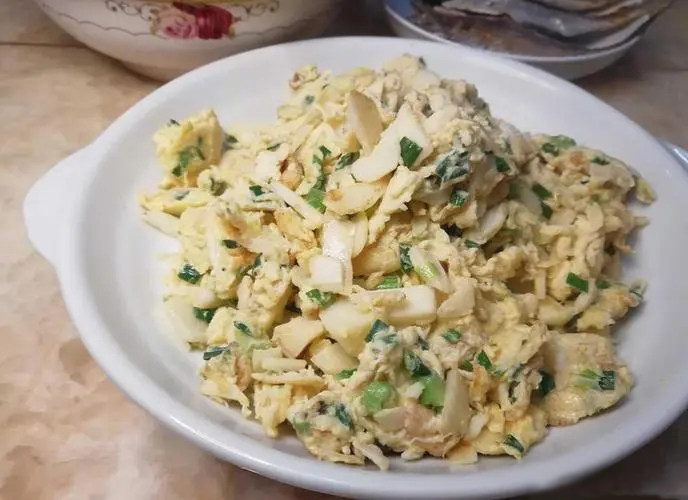 4:锅中放油炒鸡蛋至八成熟,盛出。