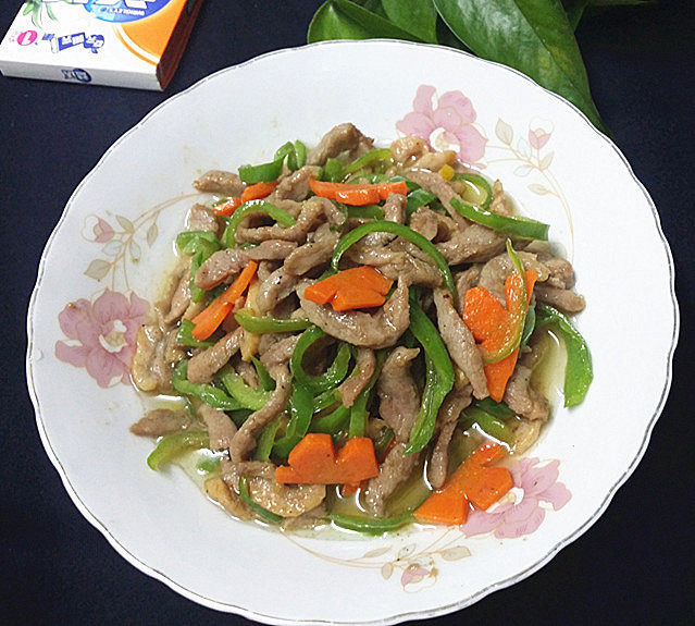 4:青椒、胡萝卜洗净后切丝