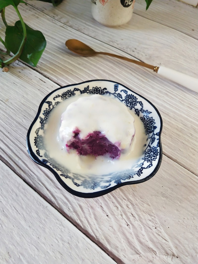 如果喜欢甜一点,可以往紫薯泥里加入适量炼乳。