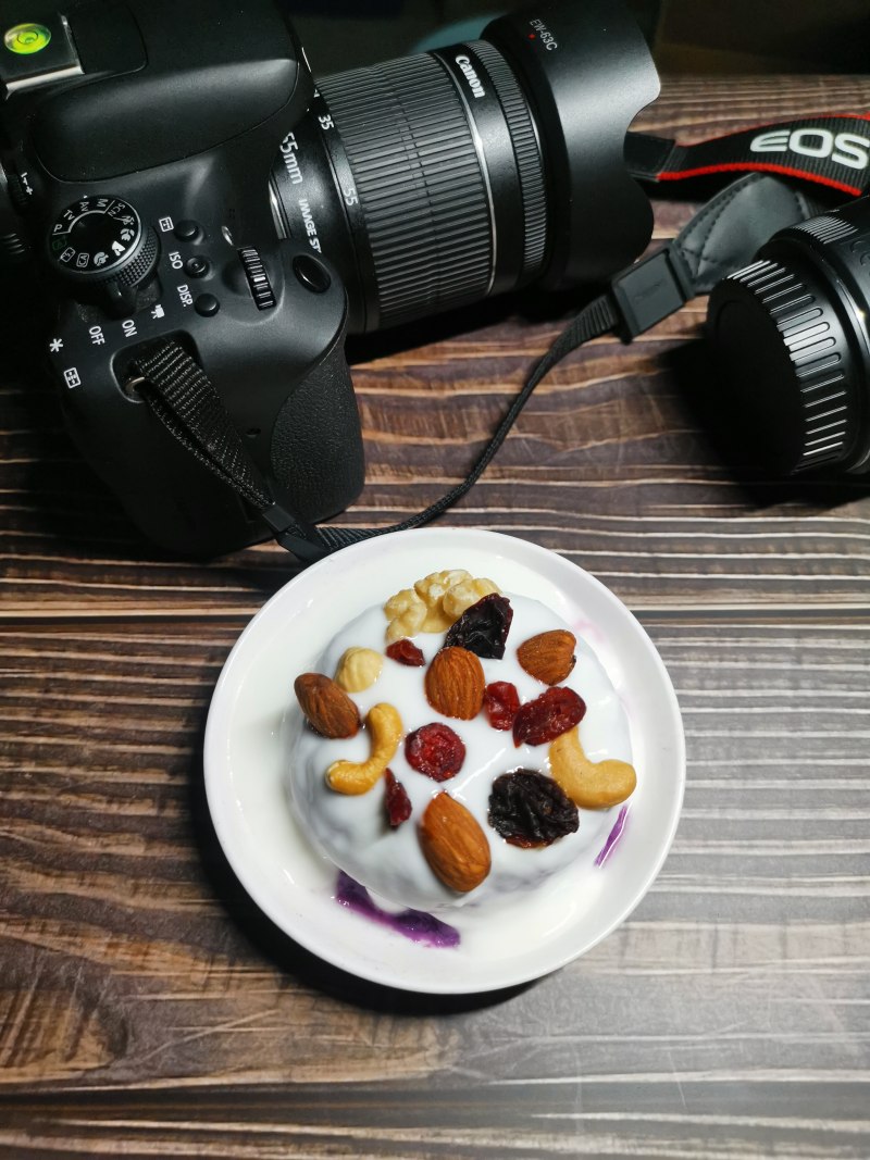 2:核桃杂碎,龙眼肉撕碎,撒在酸奶上