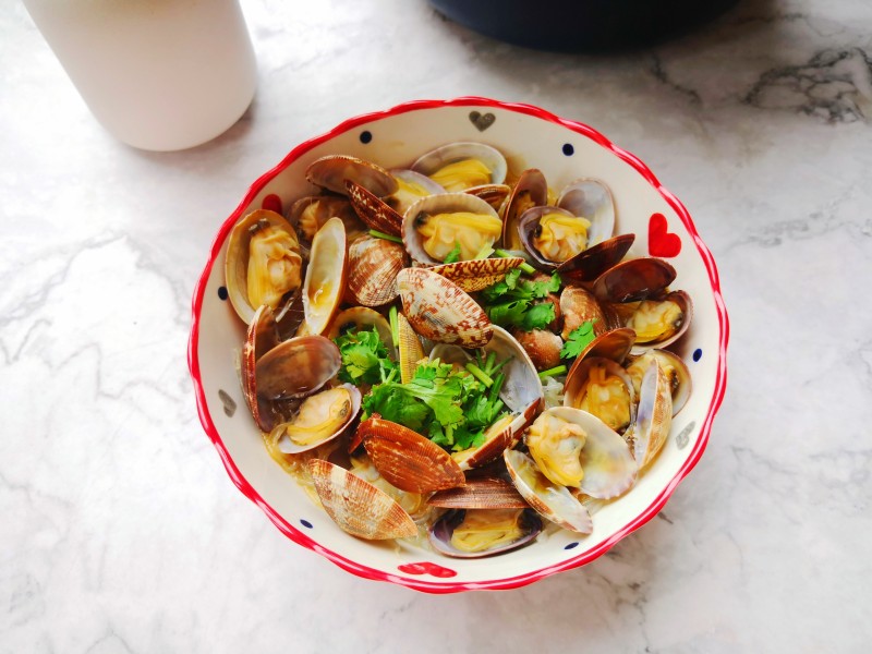 8:烧开后打开盖子,花蛤就会一个个张开口。