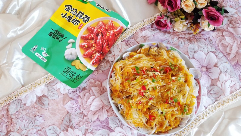 主料可以加虾,配料可以加大白菜,香菇干等等!花甲一定要提前泡下让其吐沙干净,蒜蓉酱可以去超市买,加点白糖提提鲜。
