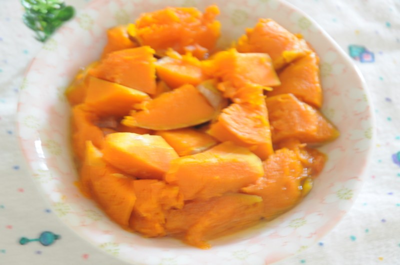 6:南瓜蒸熟后就可以吃了。