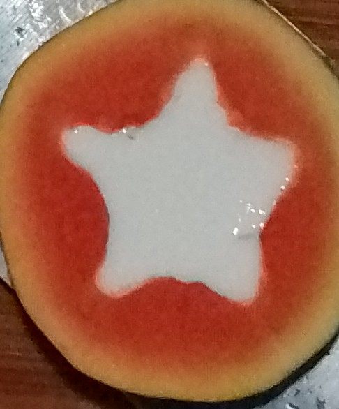 2:木瓜切开,中间挖空。