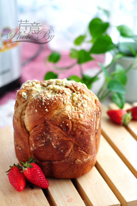 原味面包粉350克;干酵母4克;细砂糖40克;盐3克;奶粉20克;蛋液55克;牛奶190克;黄油35克;