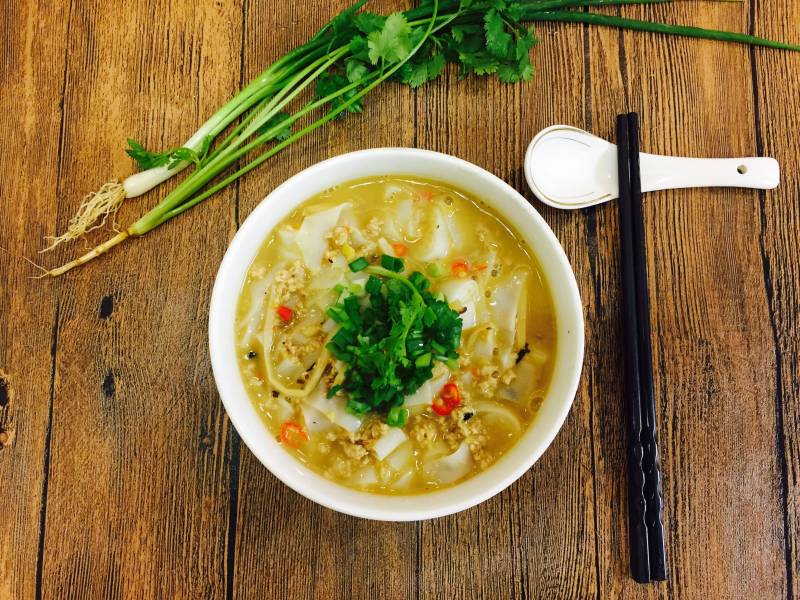 11:肉汤开后,放入切粉,马上关火,即可。