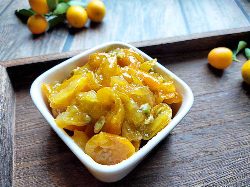 金桔加入白糖,要腌制时间久一些,熬制果酱时加入柠檬汁,是果酱起到防腐的作用。