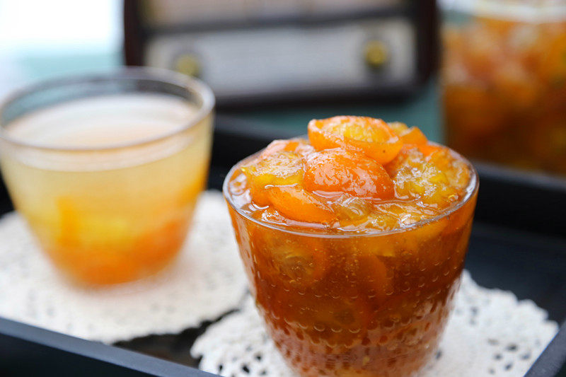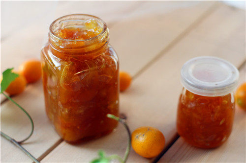 6:做好的金桔果酱装进无水的玻璃瓶里,放冰箱冷藏,冬天可以放两个月呢