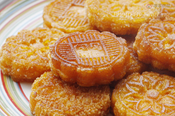 10:把两面的月饼模片轻轻取拿掉,南瓜饼样子就做出来了