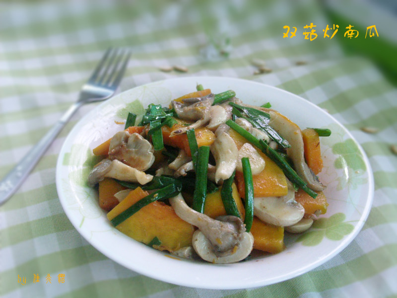 南瓜250克;口蘑100克;平菇100克;韭菜少许;