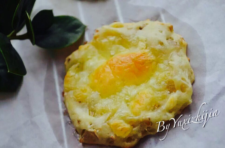 8:表面铺上芝士碎(女儿不想吃番茄酱,所以没放)