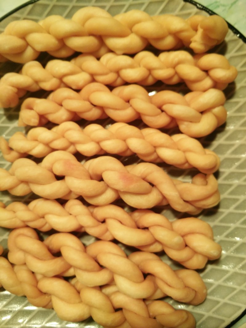 9:搓成麻花,有时间的小伙伴可以搓细点,做小点,我因为要照顾八个月的娃娃时间紧迫就搓的很大。