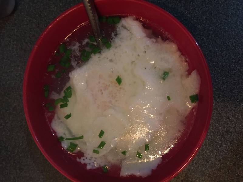 2:待锅中冒烟,水还没烧开时,打入鸡蛋