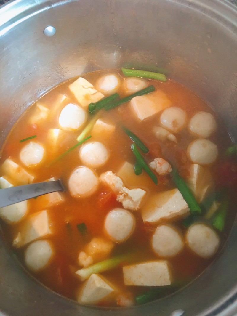 西红柿3个;小丸子适量;虾仁适量;豆腐适量;
