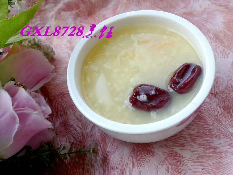1:食材:大米130克、荔枝340克、枸杞15克(已泡)、冰糖130克