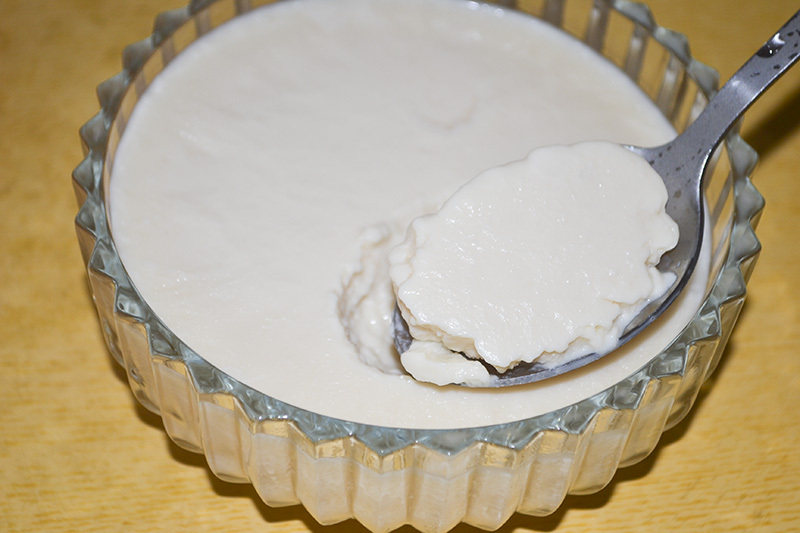9:开锅后就得到一碗花生牛奶冻,状态跟豆腐脑、姜撞奶很像。只是蟹姐过滤花生浆的时候用的滤勺有点粗,状态稍稍有点儿不太美。吃起来倒是挺好的。
