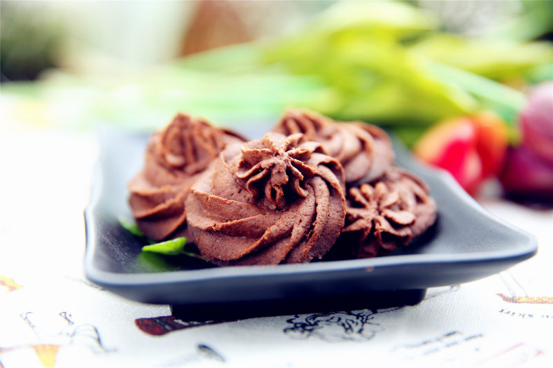 黄油35g;糖粉40g;蛋清30g;低筋面粉60g;可可粉15g;