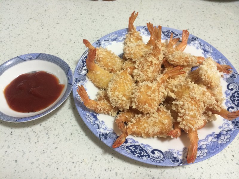 9:裹好面包屑的虾就像展开的蝴蝶。