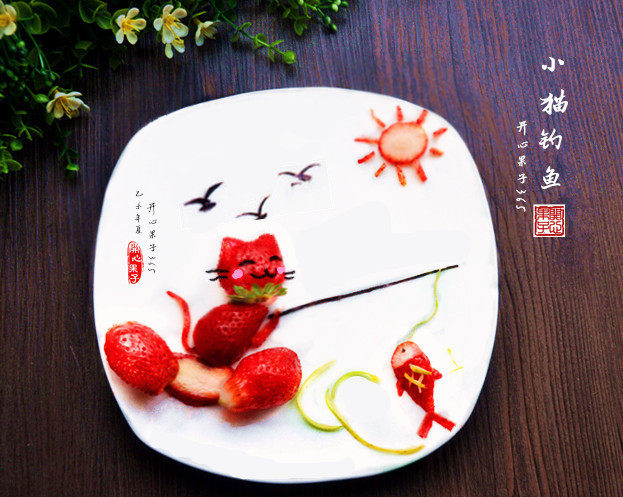 小猫钓鱼草莓创意拼盘