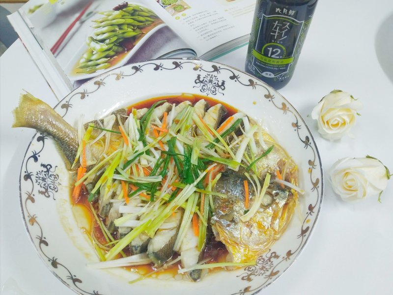 11:清蒸大黄鱼就弄好了,鱼肉鲜嫩爽口。