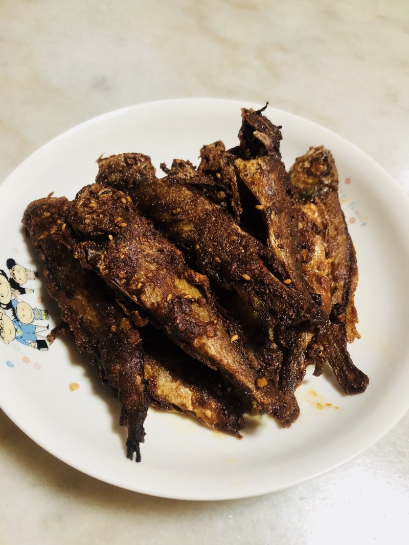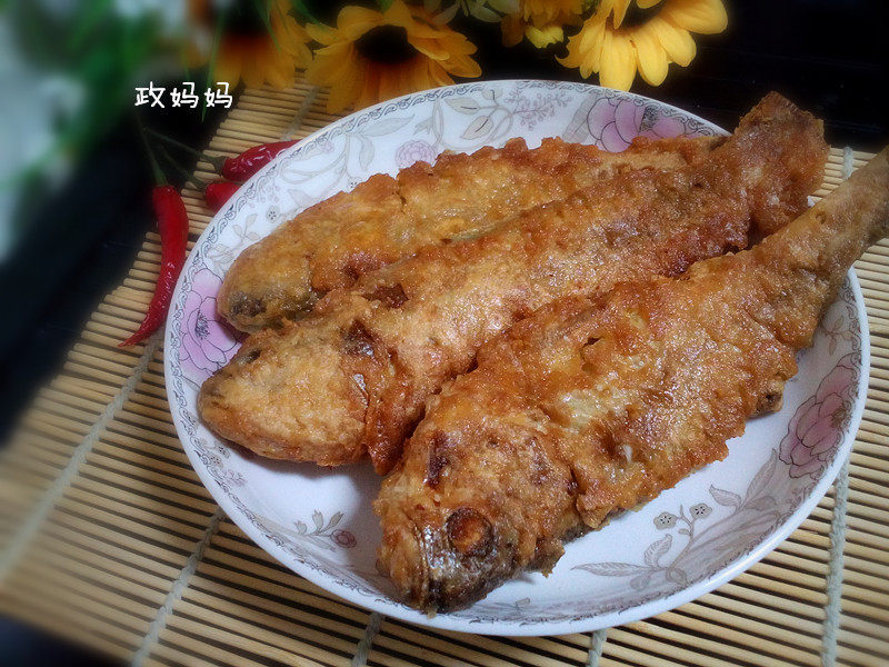 本来是裹面粉的,结果家里面粉暂时用完了,就找了面包糠代替,这样煎的小黄鱼还多香脆的