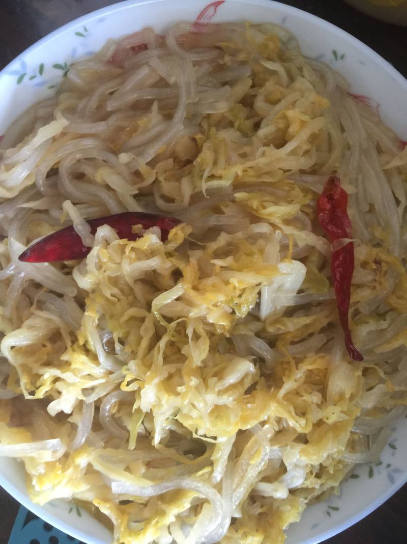 2:把粉皮放在凉水里泡软。在东北炒酸菜一般是配粉条,所以喜欢粉条也可以替换。