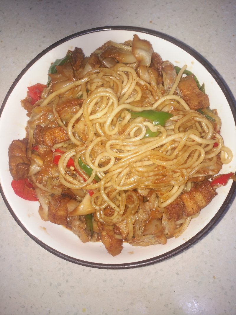 食用油2勺;老抽1勺;青椒1顆;红椒1顆;