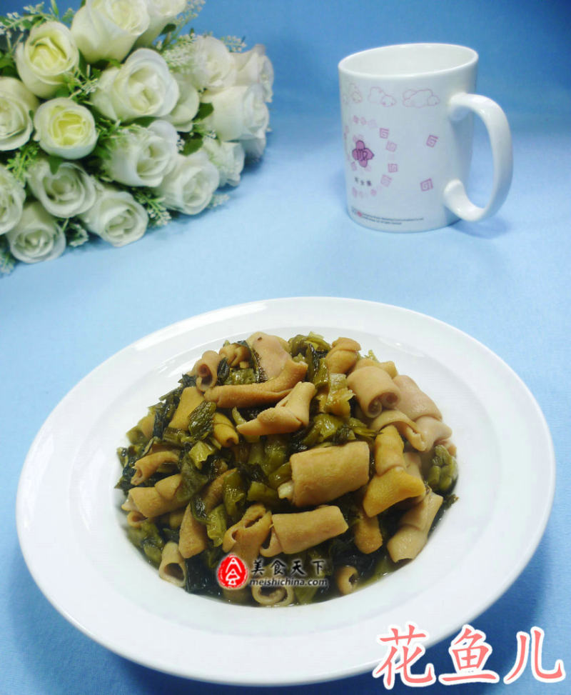 猪大肠300g;酸萝卜100g;剁椒20g;