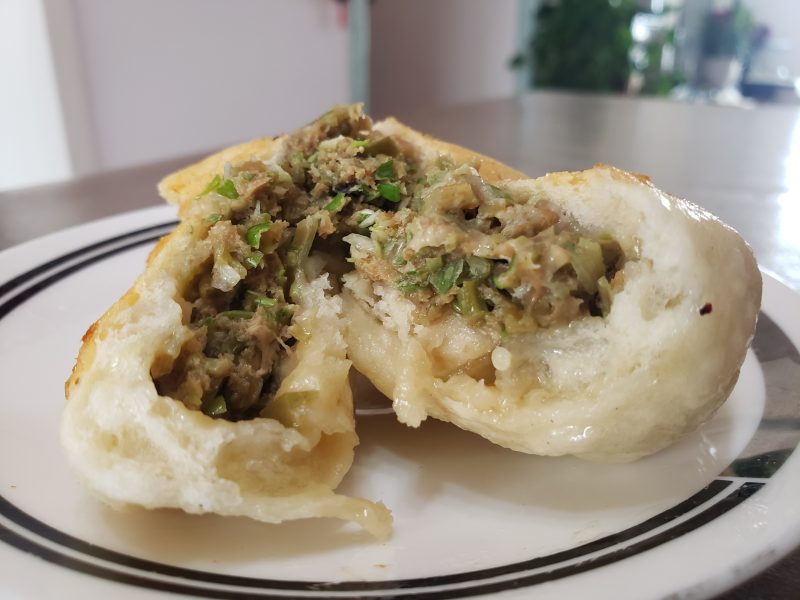 4:煎至鼓起来就熟了。成品图。这样油少,生煎的不会太油腻。