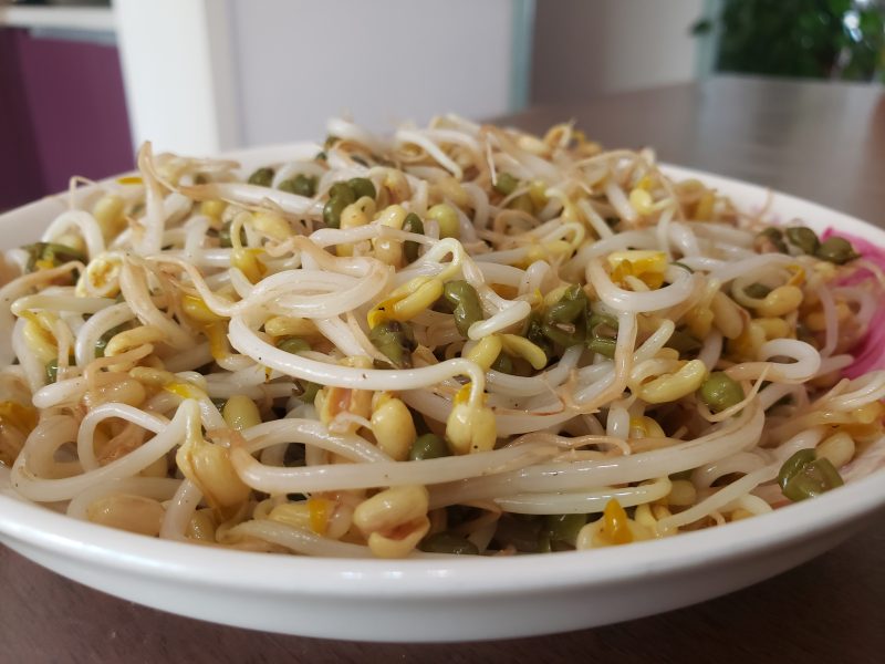 1:自发绿豆芽,淘洗干净,控水,备用。
