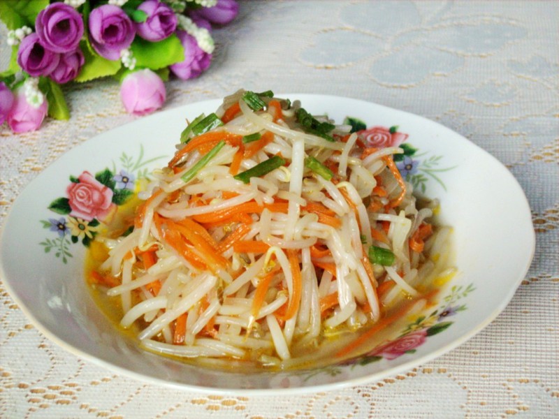 胡萝卜60克;绿豆芽250克;