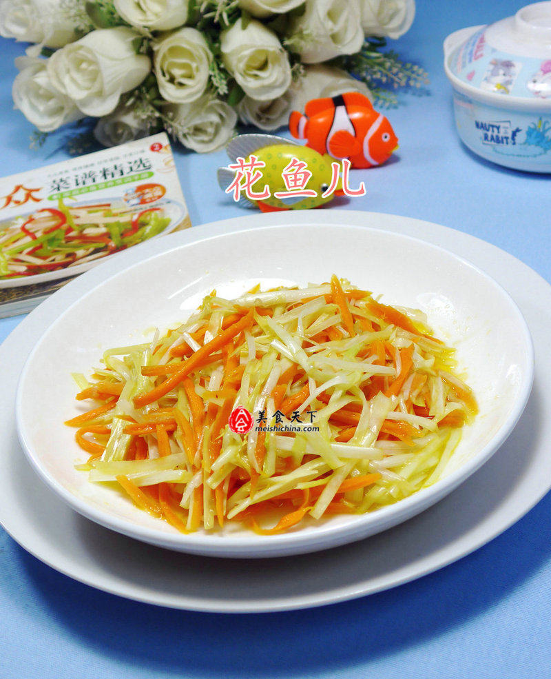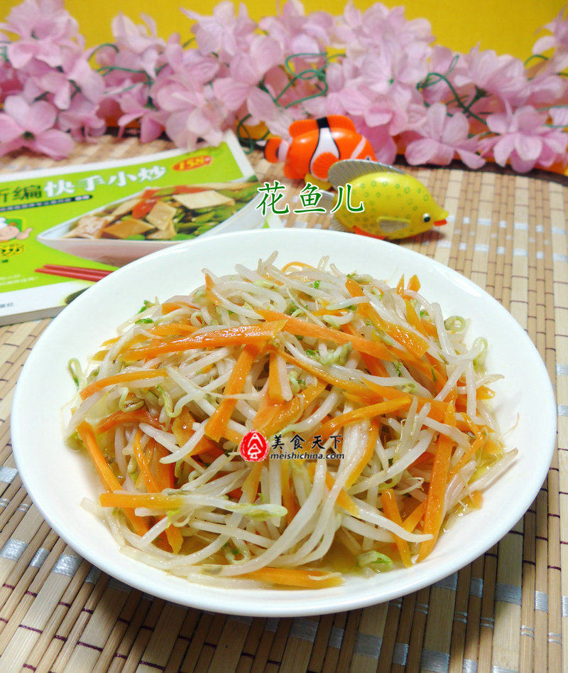 9:绿豆芽择去根部洗净控水,胡萝卜切丝