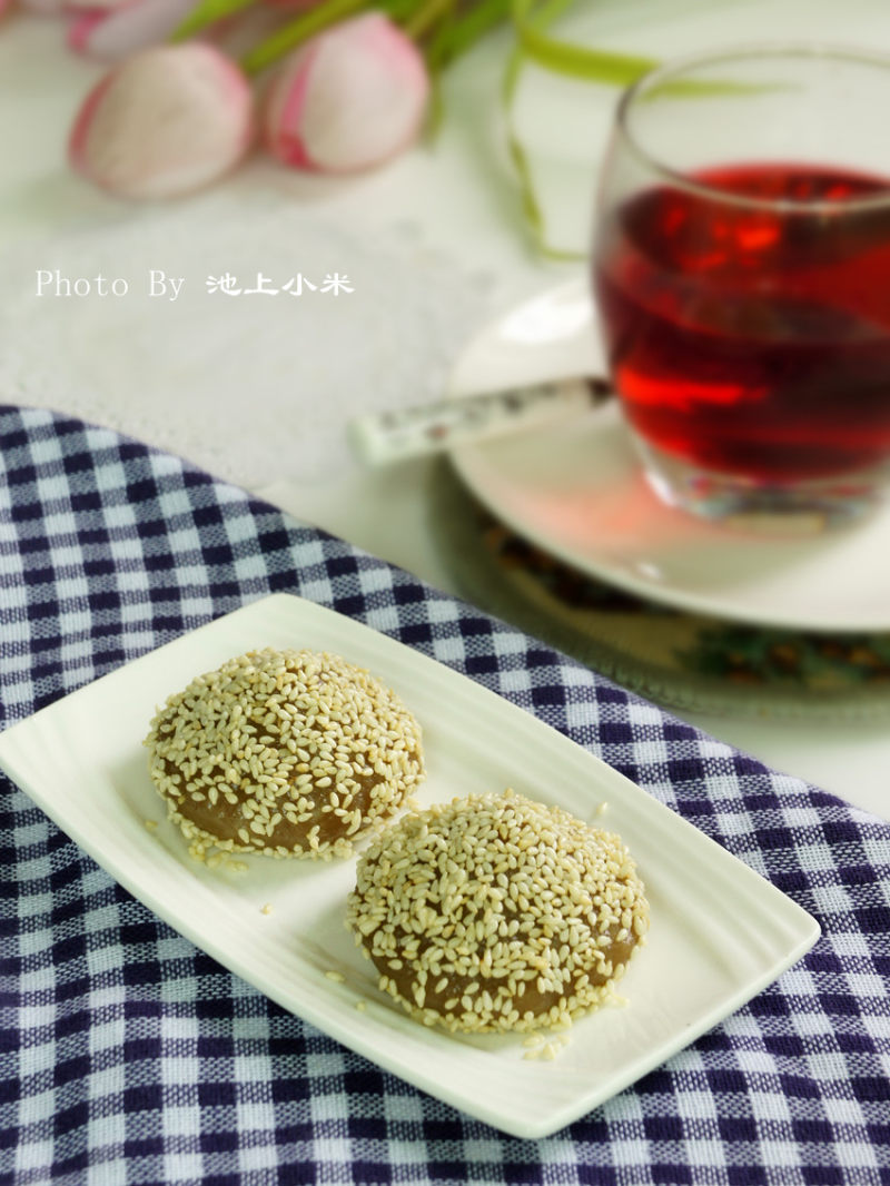 1:主辅料:糯米粉调味料:油、白糖、黑芝麻