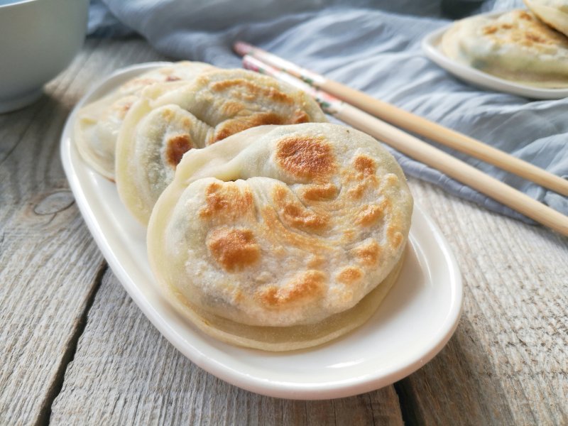 9:开火,锅内倒入少许油,将饼坯放入煎制,两面金黄时可出锅。