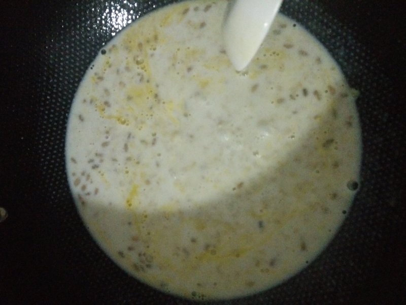 4:食材熟黑枸杞入锅断电,稍加搅拌。