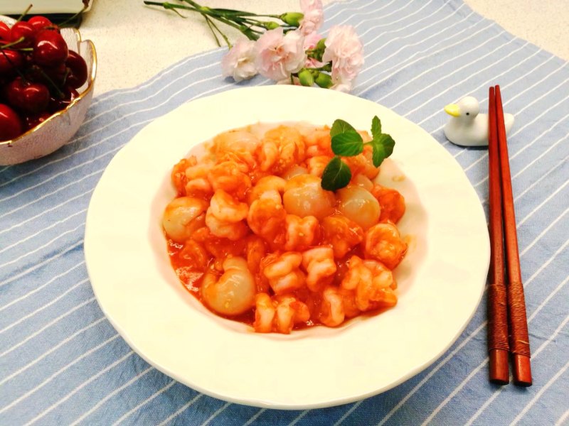 7:这道酸甜可口,开胃解馋的荔枝虾球搬上桌就可以享用啦!