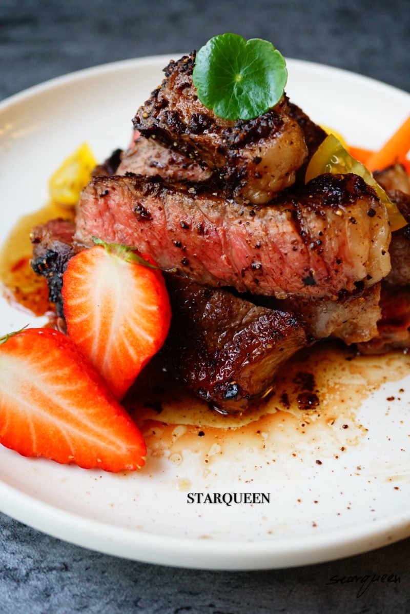 4:3分熟西冷牛排。切条食用。