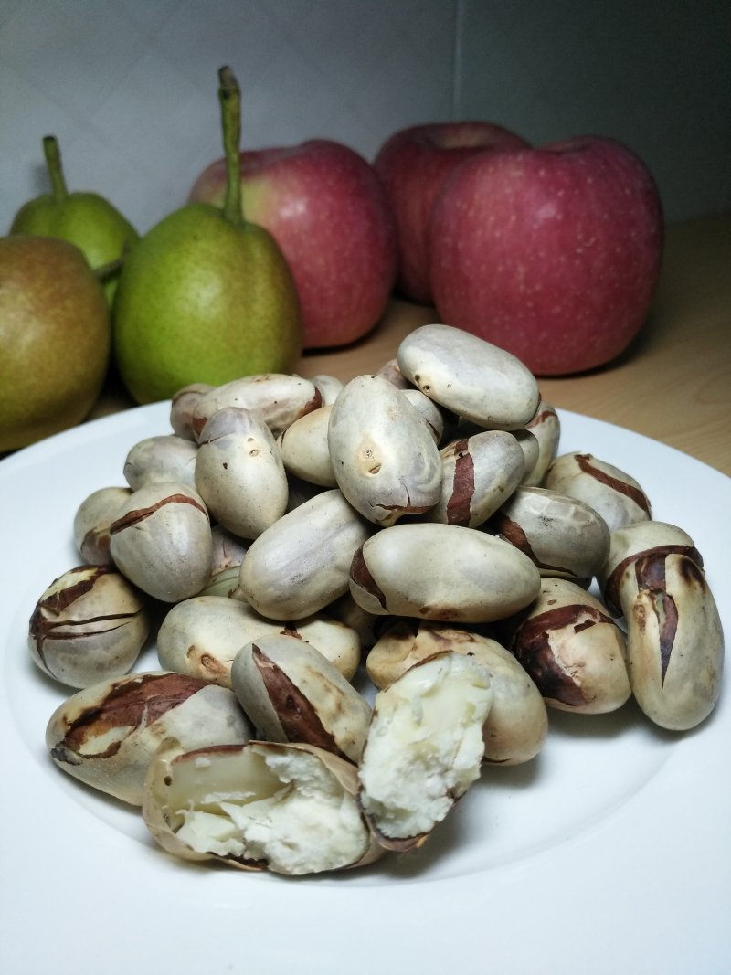 8:成品。剥掉菠萝蜜核的白色外壳就可以吃了,口感像板栗,又像菱角,粉粉糯糯,非常好吃。