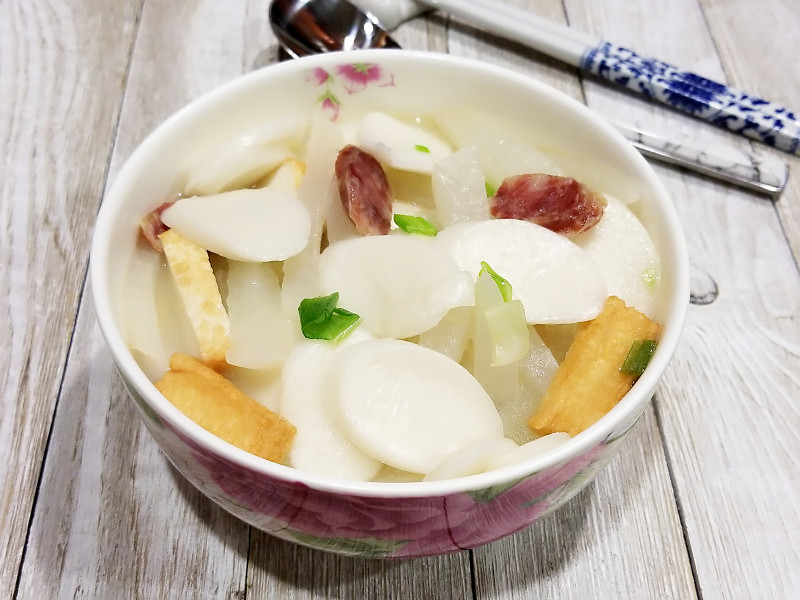 年糕650g;萝卜1条;腊肠2根;鱼豆腐适量;